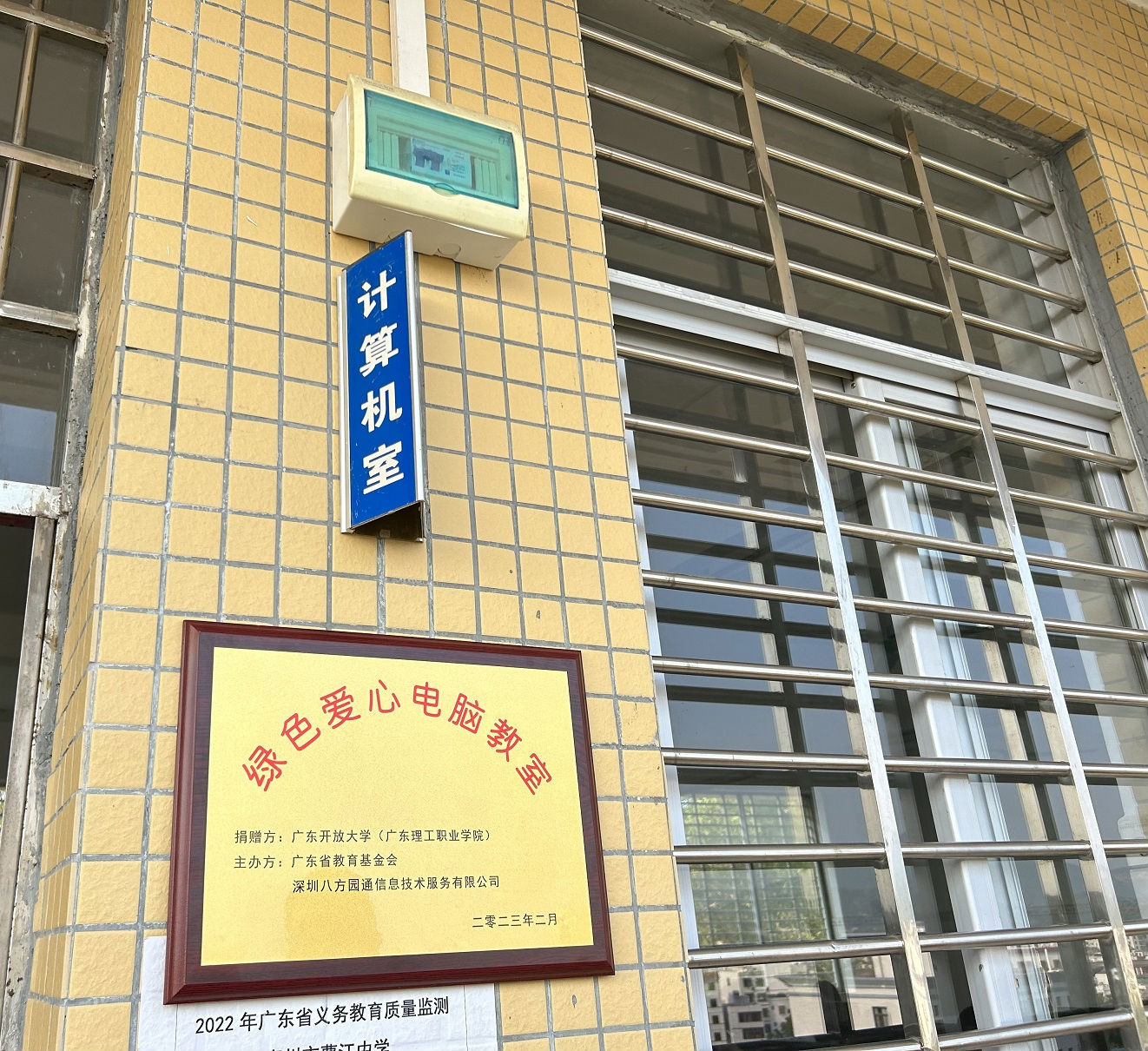 向曹江中學(xué)贈送“綠色愛心電腦教室”牌匾,