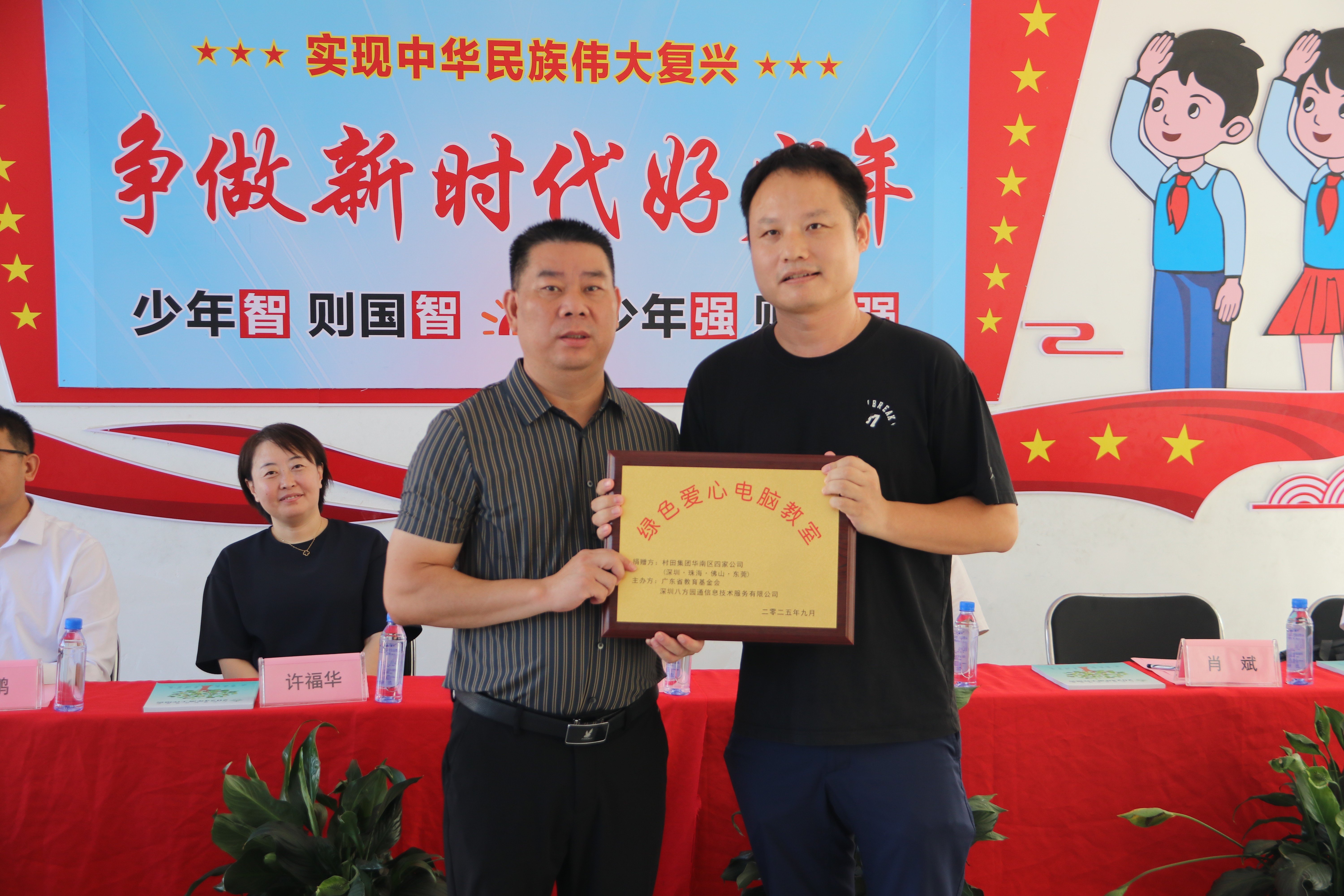 村田集團華南區(qū)代表肖斌先生陸河縣新田鎮(zhèn)中心小學贈送“綠色愛心電腦教室”牌匾